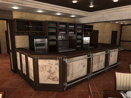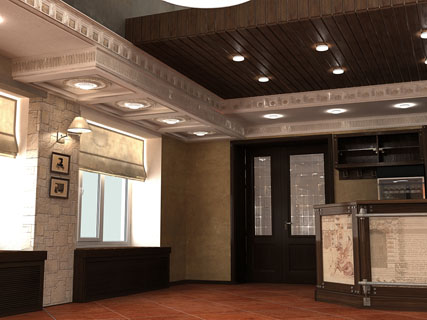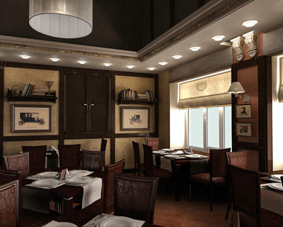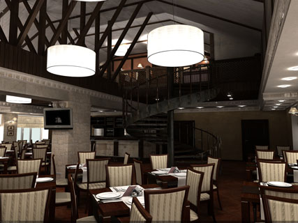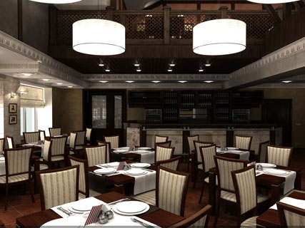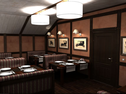 Нам был заказан простой в исполнении и изысканный дизайн для кафе-ресторана в г.Павловск. Заказчику очень нравились натуральные отделочные материалы, а также он не пожелал закрывать стропильные конструкции здания, чтобы не делать отапливаемый чердак. Эти ижеи и легли в основу проекта.