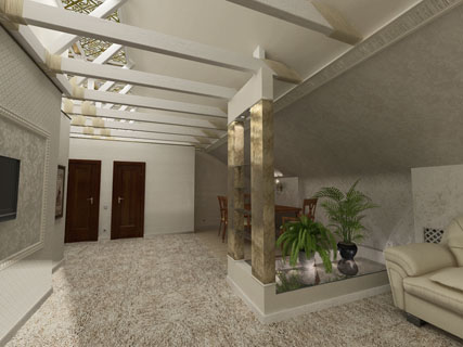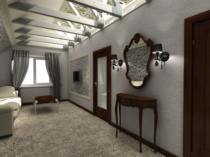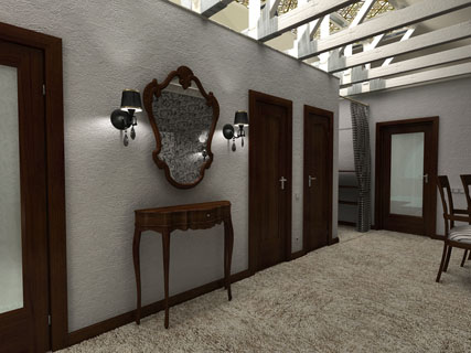 Этот заказ предполагал разработку дизайн-проекта только для основного набора номеров: два стандартных номера и два номера класса люкс. Для создания уютной домашней атмосферы был выбран легкий классический стиль. Нами был разработан сам принцип расположения основных декоративных элементов, и также основные планировки помещений. Это дало возможность заказчику не тратить деньги на дизайн-проект на всю площадь гостиничных номеров, а также позволило заказчику самому создать разнообразие в номерах уже на месте просто применяя обои и декор различной цветовой гаммы.