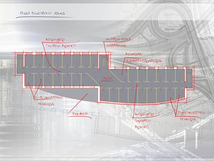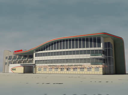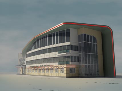 Это эскизный проект крупного гостиничного комплекса в г.Воронеже вблизи тамбовской трассы. Нам в студии P.S.architect надо было разработать полное решение по объекту: от планировок до объемно-пространственного решения. Сейчас очень редко проектируют такие большие здания "с нуля", а часто используют для этого старые сооружения, просто восстанавливая его в новых отделочных материалах. Тем более примечателен этот проект.